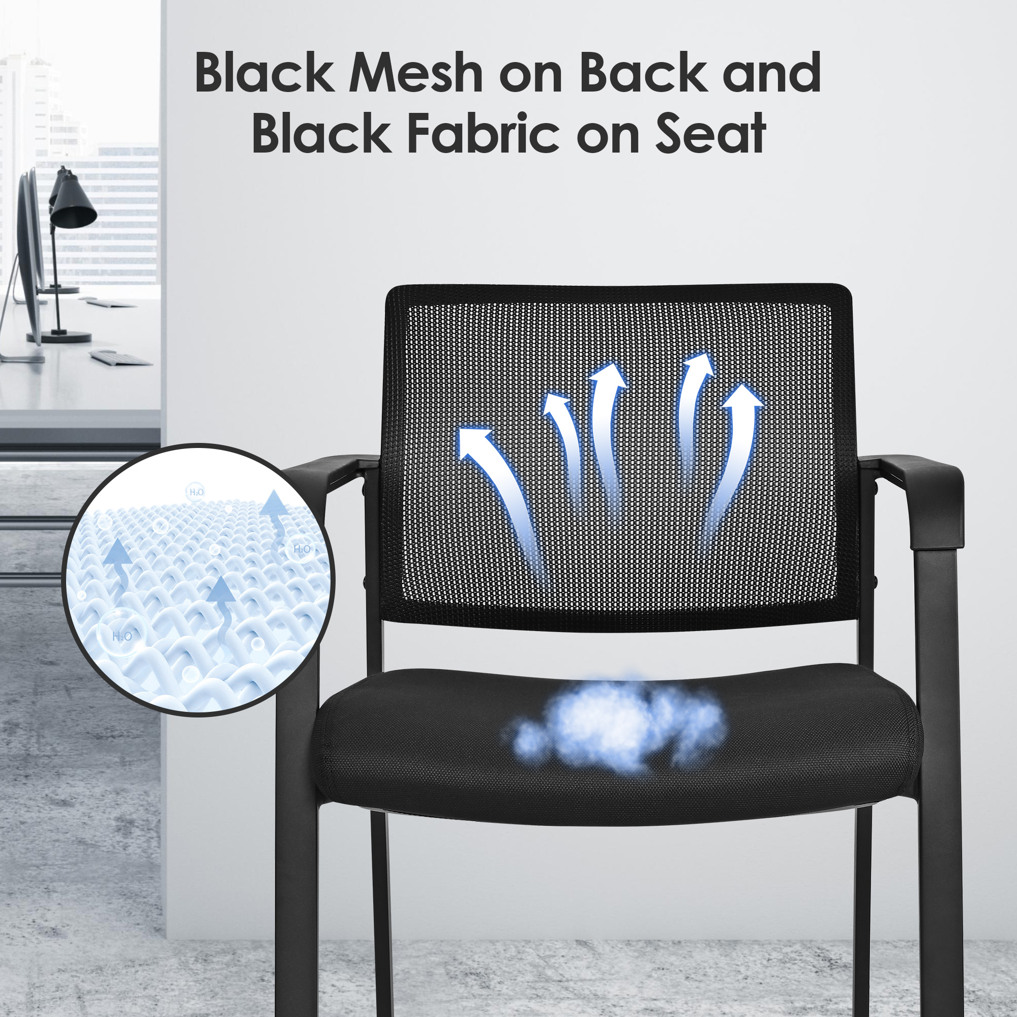 Stackable Guest Chair with Armrests – Mesh Back & Padded Seat, Metal Frame, Black - Moustache®MOFC-LDL-816