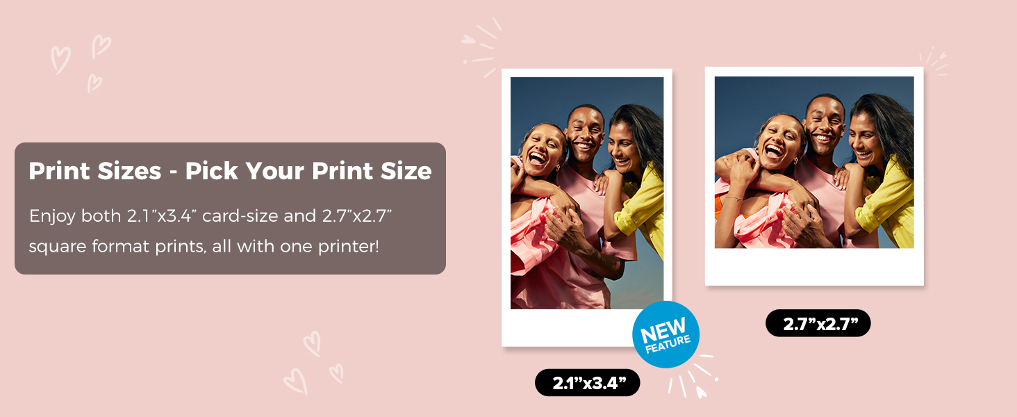 Introducing the second generation SELPHY QX Series Square Printer, the QX20 Wireless Compact Photo Printer. We have expanded the capability of this printer to add a new Card size sticker paper format (2.1” x 3.4”) in addition to the popular square size sticker paper (2.7” x 2.7”) option. This updated version maintains the compact size and 1lb weight, but in a new streamlined design, and can now print borderless on three sides, leaving an area for writing something special at the bottom.